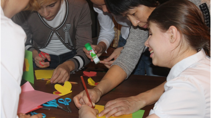 Біздің мектептен бірінші волонтерлер болып 9 сынып оқушылары Екатерина Кукреш, Сания Смакова, Зарина Холова, Валентина Полюхович және олардың тәрбиешісі А.Е.Ерболатова танылды.Олар өздерінің уйден оқытылатын сыныптасы болатын Анастасия Ильинаға баруды ұйғарды. Кездесу өте жайлы, достық, жылы қарым-қатынаста өтті. Қатысушылар қағаздан бұйымдар жасаумен айналысты. Бірлескен шығармашылық – бұл емдік шығармашылық. Мұнда балалар әдемі, пайдалы, жаңа бір дүние жасаушы ретінде еңбектенді. Волонтер-қыздарымыздың өз тәлімгер-тәрбиешілерінен үйренген қағазбен жұмыс жасау шеберліктерімен, икемділіктерімен қалай тәжірибе бөліскенін тамашалау өте қызықты болды. Настяның сыныптастарымен күтпеген кездесуін сөзбен жеткізу мүмкін емес!!! Жас волонтерлер атқарылған жұмыстан, кездесуден көңілді оралды!
