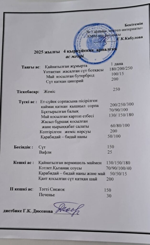 Ас мәзірі – 04.09.2025