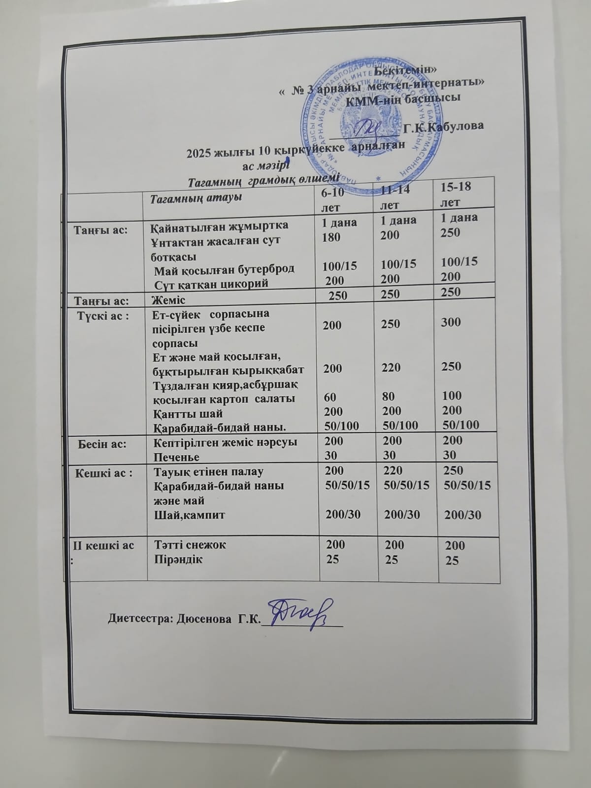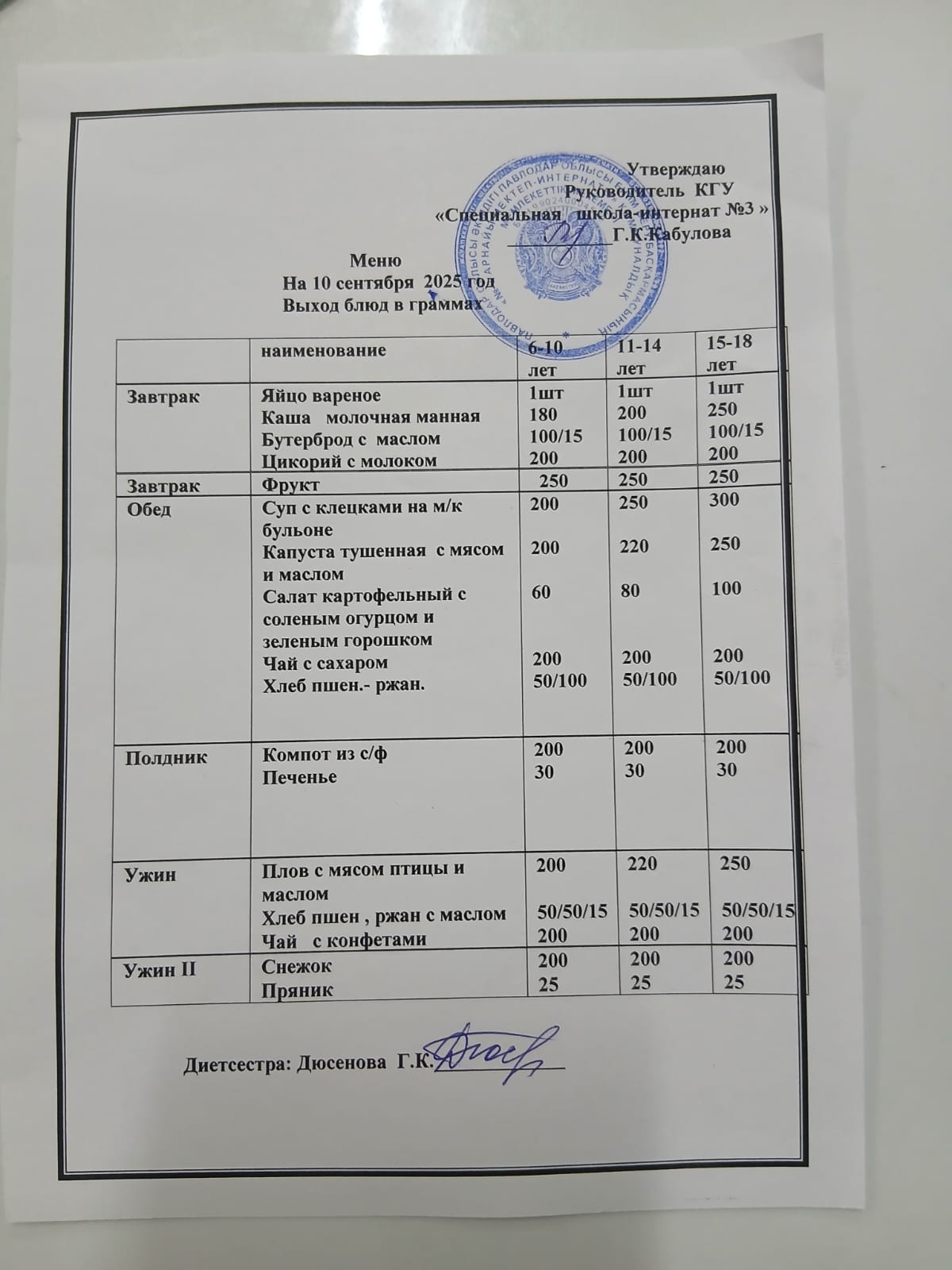 Ас мәзірі — 10.09.2025