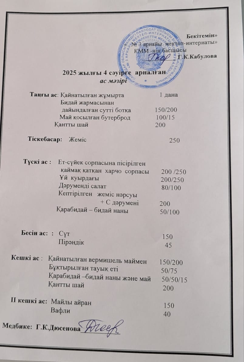 Ас мәзірі 4.04.2025