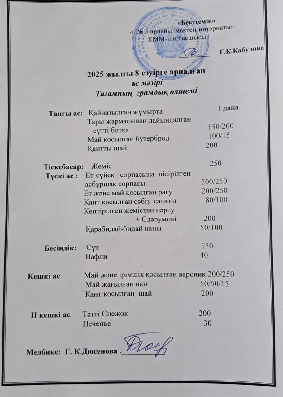 Ас мәзірі 8.04.2025