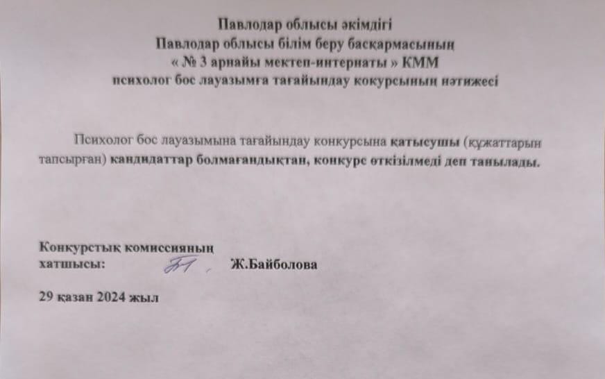 ПАВЛОДАР ОБЛЫСЫ ӘКІМДIГІ ПАВЛОДАР ОБЛЫСЫ БIЛIМ БЕРУ БАСҚАРМАСЫНЫҢ "№3 АРНАЙЫ МЕКТЕП-ИНТЕРНАТЫ" КОММУНАЛДЫҚ МЕМЛЕКЕТТІК МЕКЕМЕСІ
