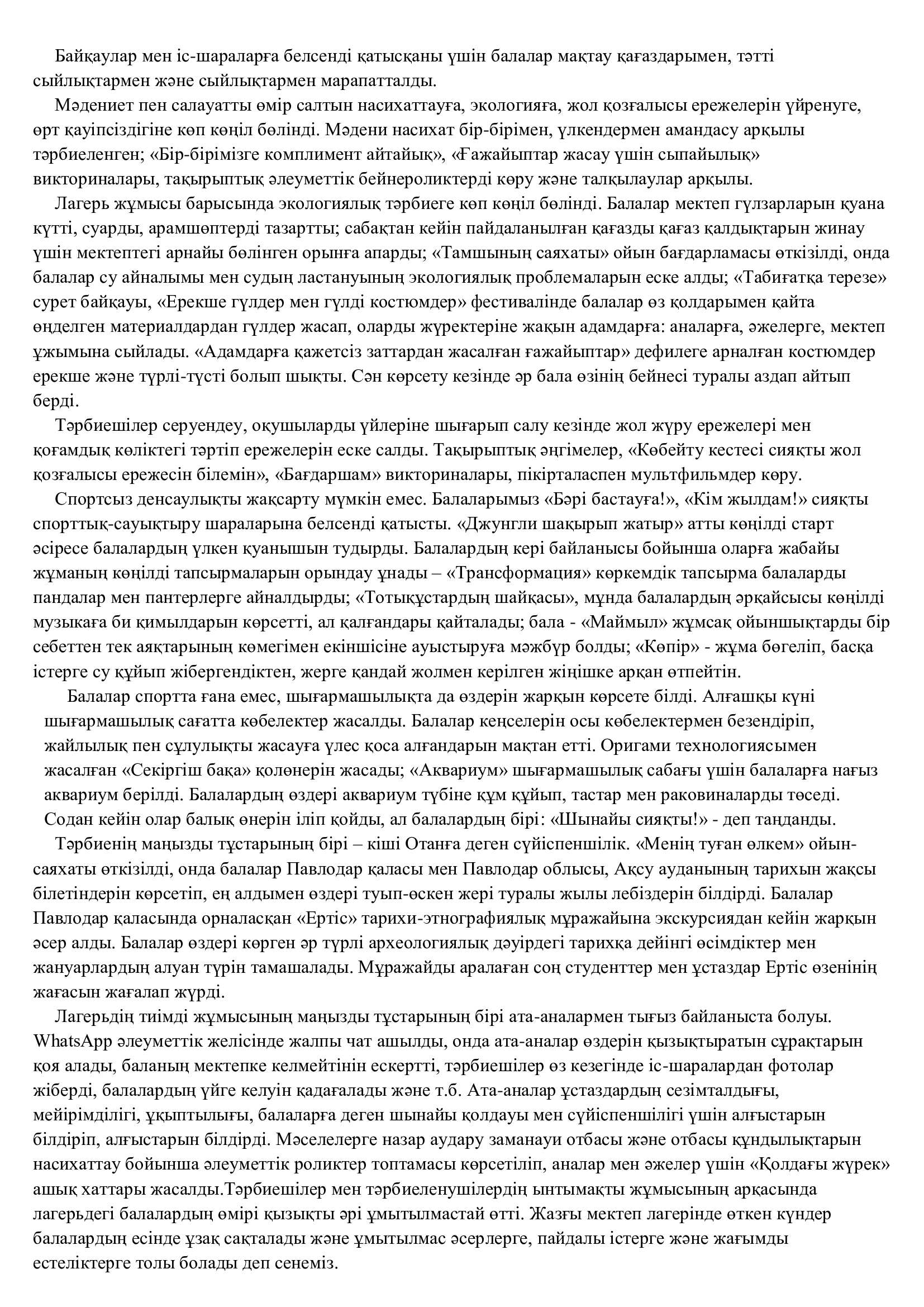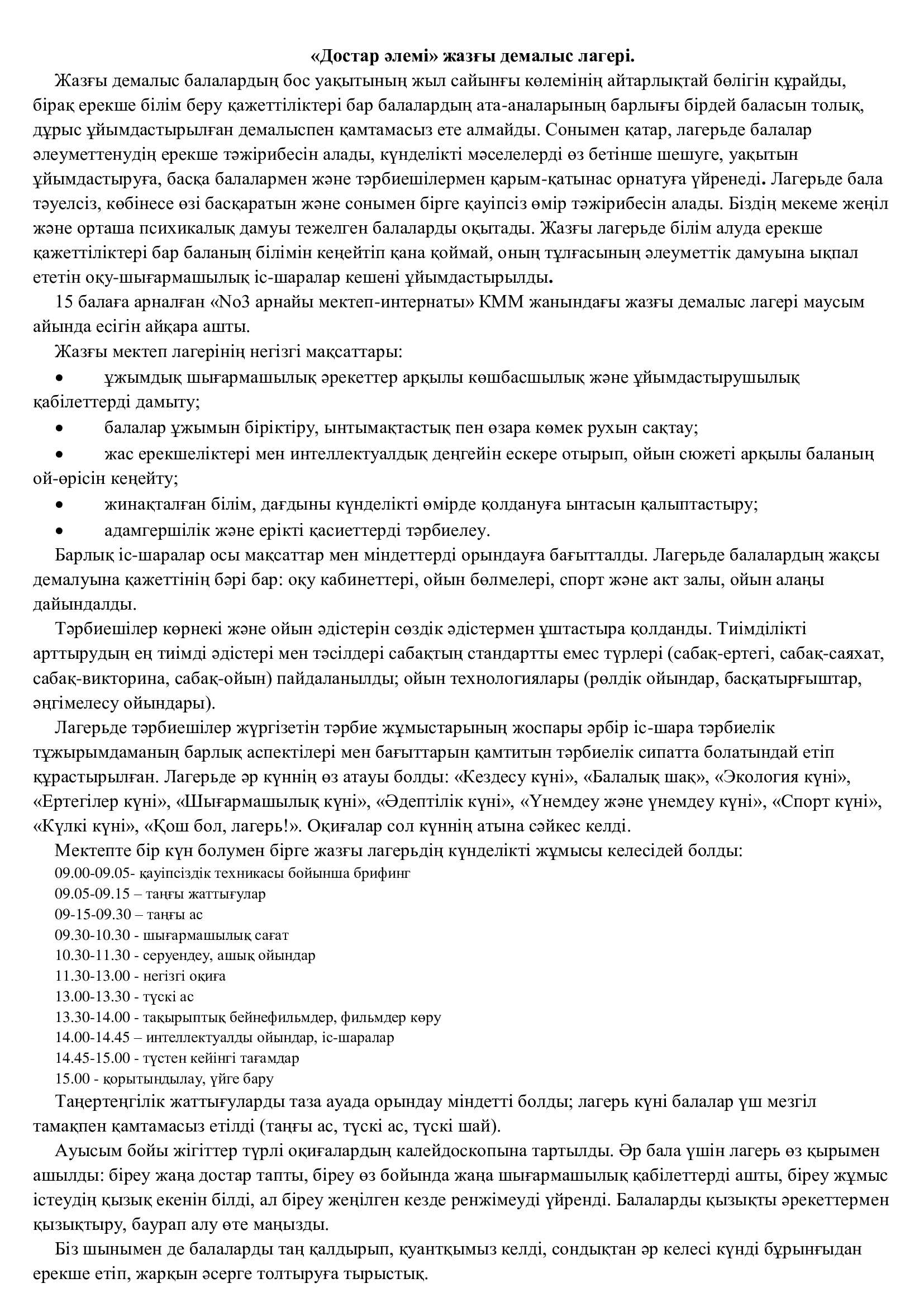 «Достар әлемі» жазғы демалыс лагері.
