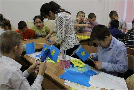 «Менің Туым» облыстық жобасы аясында желтоқсанның 11-і мектеп-интернатымызда «Желбірей бер, көк туым» атты шығармашылық сағат болып өтті. Бұл іс-шаранның шарты бойынша әр сынып оқушылары тәрбиешілерімен бірге, Мемлекетіміздің көк туын қолдан жасап шығару еді. Барлық сыныптар акт залында жиналып, іске кірісті. Отанға деген сүйіспеншіліктерін өз жүмыстарынан көрсеткісі келген іс-шара қатысушылары, барлық күштерін, қиялдарын салып еңбектенді.