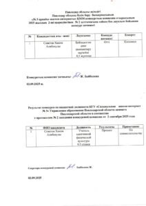 Бейімделген дене шынықтыру мұғалімі бос лауазымына орналасуға арналған конкурстың қорытындысы бойынша,