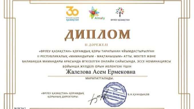 Әр ұстаздың алар асуы мен жетер белестері көбейе берсін. Еңбегімздің марапаты ретінде оқушылармыздың биік шыңнан көрінуіне куә бола берейік.