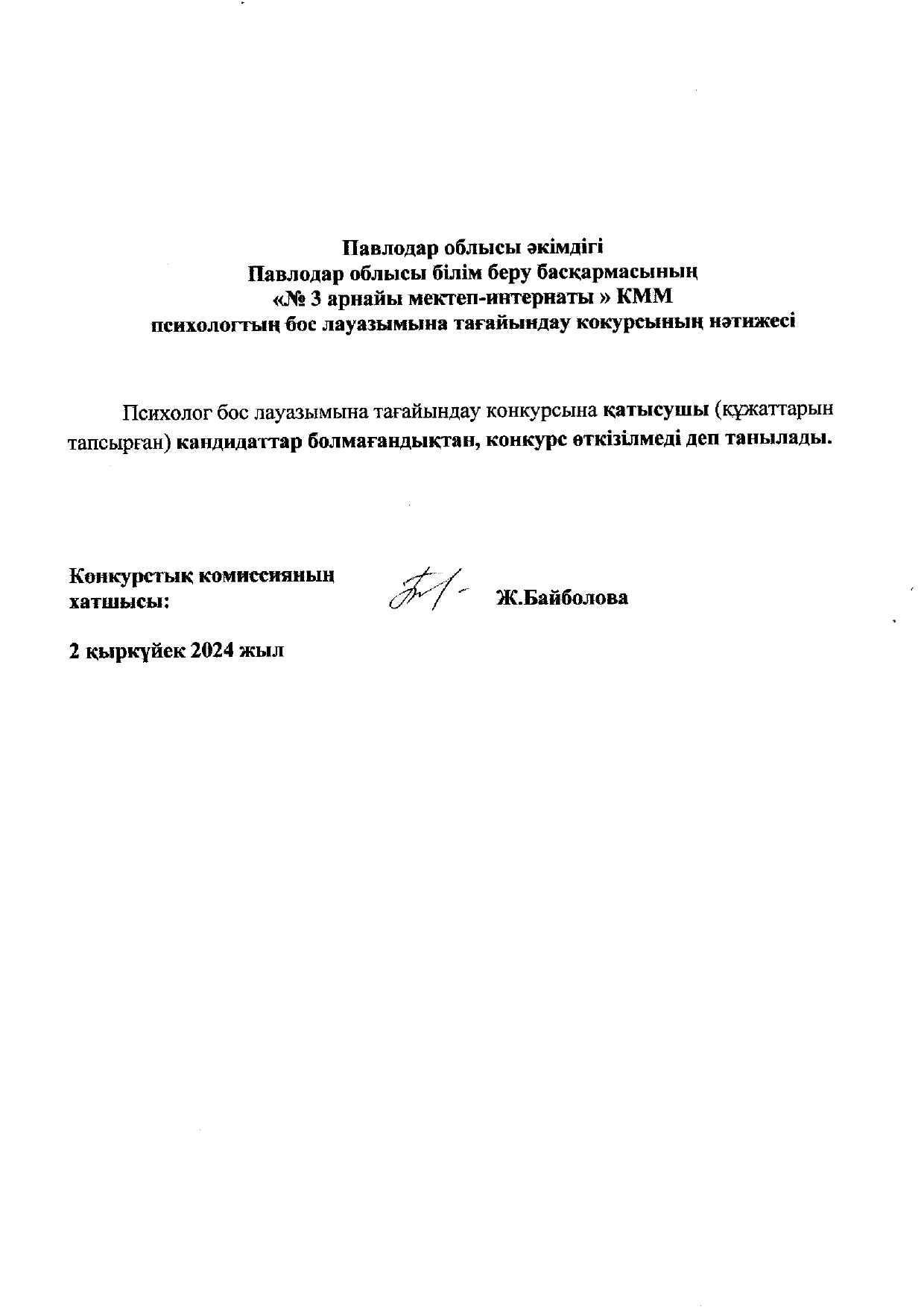 Психологтың бос лауазымына тағайындау кокурсының нәтижесі