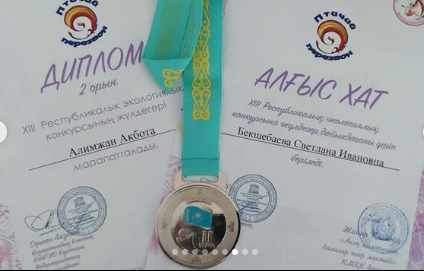 Мұғалімдердің жетекшілігімен оқушылар республикалық экологиялық байқауға қатысты. Ұйымдастырушы – Ақсу балалар өнер мектебі, Қазақстан Ұлттық ЮНЕСКО клубтары федерациясының қолдауымен.Оқушы Әлімжан Ақбота «Таң алдында би» жұмысымен, жетекшісі Бекшебаева С.И. лайықты 2 орынға ие болды. Жеңімпаз диплом және қола медальмен марапатталды.Шын жүректен құттықтаймыз