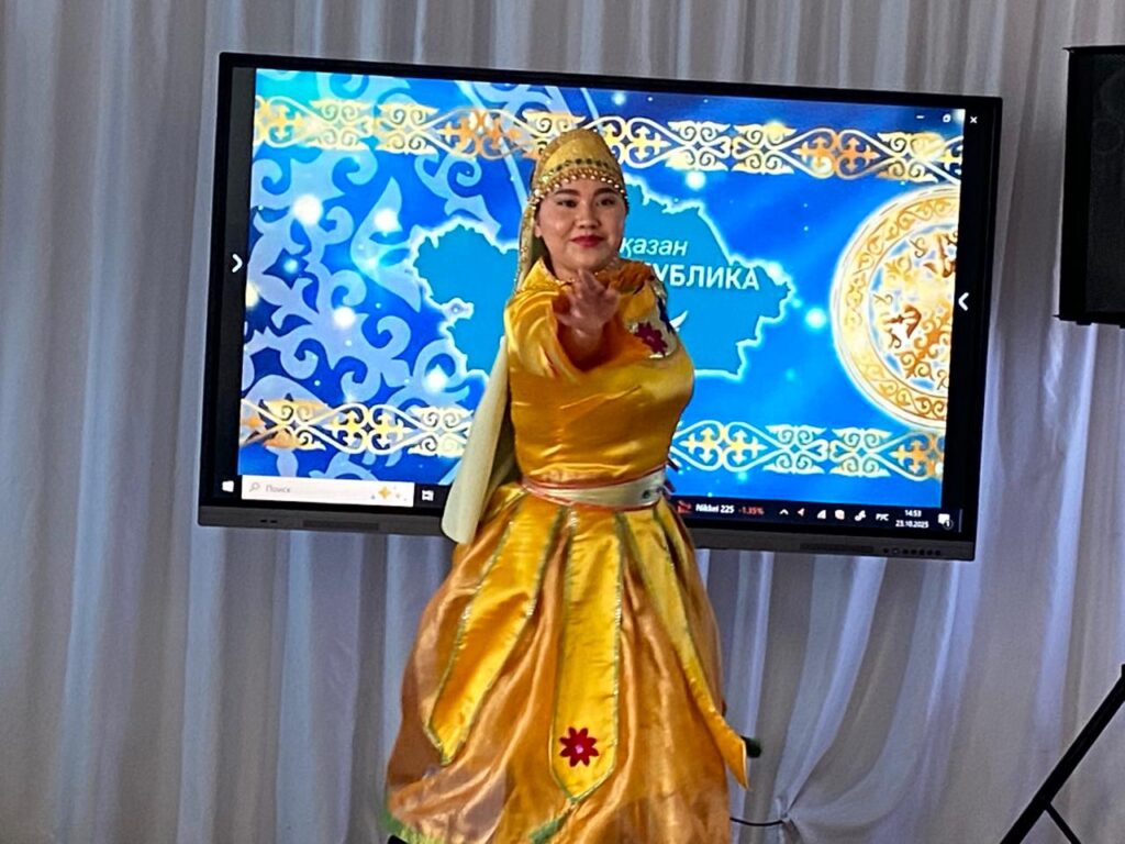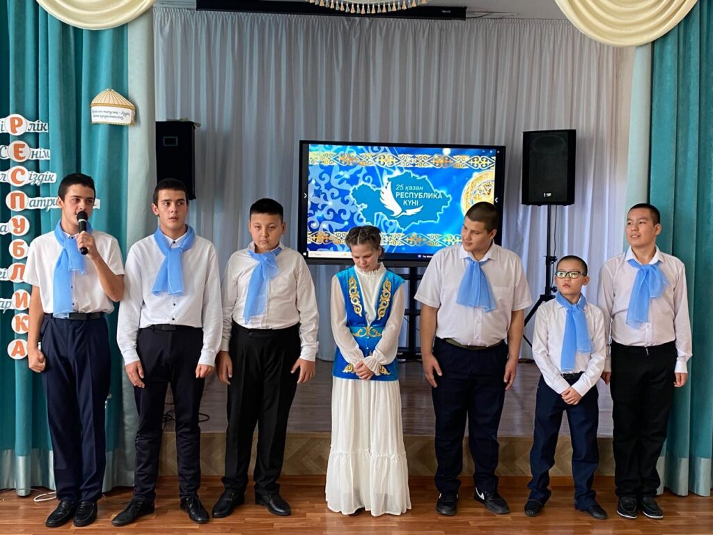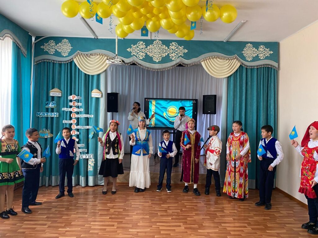 ✨ Салтанатты іс-шара Туды алып шығу және Әнұранды орындаумен ашылып, марапаттау рәсімі болды. 🎭 Бағдарлама барысында ұстаздар мен оқушылар түрлі жанрдағы әдемі өнерлерін көрсетті. 🤝 Мерекенің соңы жалпы Достық биімен аяқталып, бірлігімізді нығайтты.