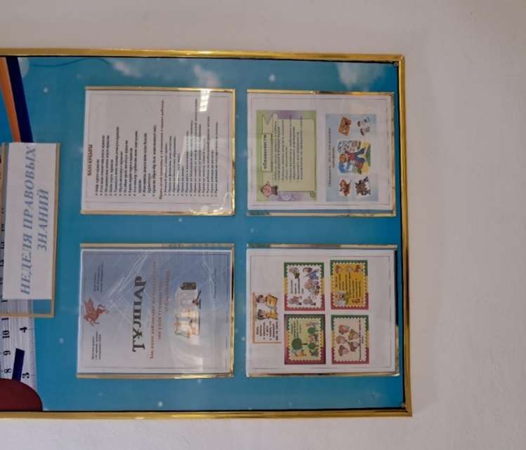 Мақсаты:балалардыолардыңқұқықтарытуралыконвенциядабекітілген құқықтары менміндеттерімен таныстыру, олардыңқұқықтарыүшінжауапкершіліктісезінугеықпал ету.Құқықтықбілімапталығыныңбасындабарлықбалалардыңназарынөзқұқықтарыменміндеттерінбілутуралы аудару мақсатында«Тұлпар» қабырға газеті рәсімделді.