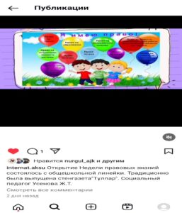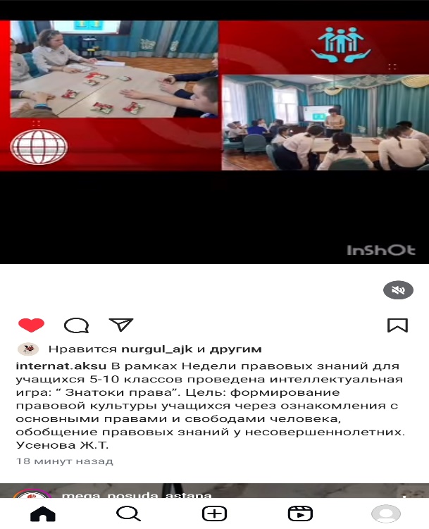 27.02.2025 ж. 5-10 сыныптарға арналған «Құқық білгірлері» зияткерлік ойынын әлеуметтік педагог Ж. Т. Усенова өткізді.