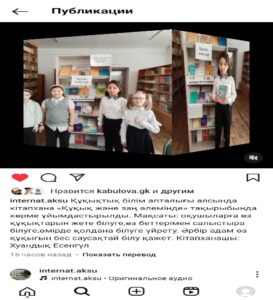 Жоспарға сәйкес барлық жоспарланған іс-шаралар өткізіліп, әлеуметтік желілерде жарияланды.