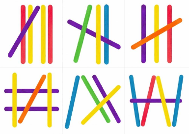 Г) Үстелдің үстінде 10-15 қарындаш немесе есептік таяқшалар жатыр. Оларды бір-бірден алып қолға жинау керек. Содан кейін тура солай қайтадан үстелге қою керек. Екінші қолмен көмектесуге болмайды.