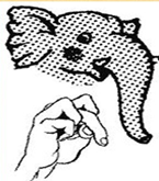 Піл: оң қол алақаны жайылып тұрады. Сол қол саусақтары бас бармақ пен кішкене бөбек артқы аяғы болса, баланүйрек саусақ пен шылдыр шүмек саусақ алдыңғы аяқтар, ал ортаңғы саусақ пілдің тұмсығы.