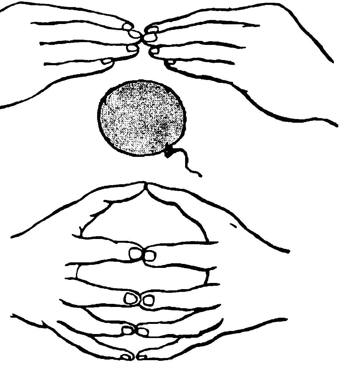 Доп: алақандар бір-бірімен жабысады. ( доп пішінін жасайды).