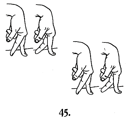 Екі саусақпен 5-ке дейінгі тура және кері санап, алға-артқа жүру.