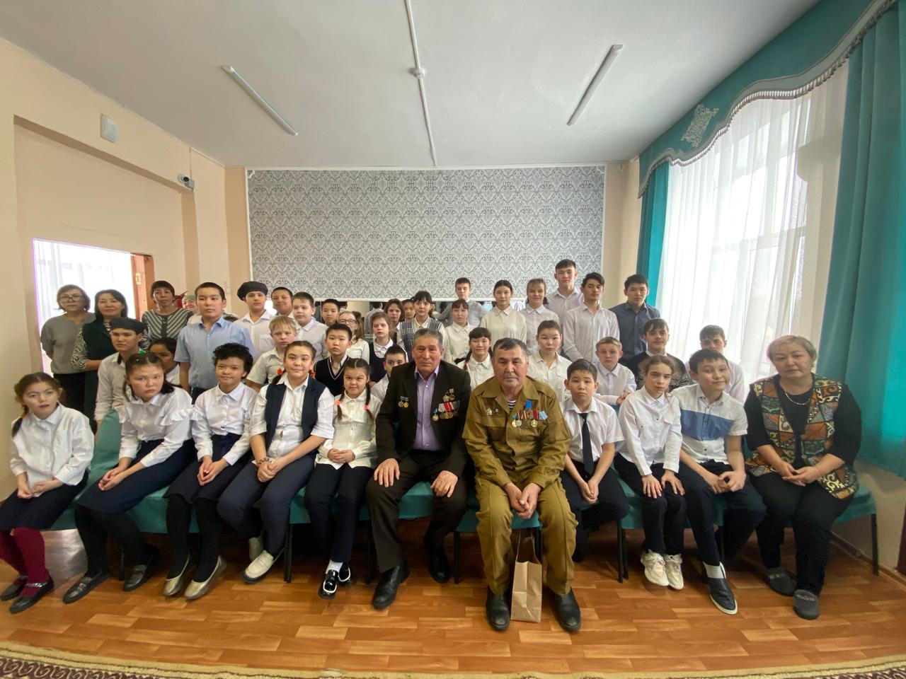 Ауғанстаннан әскерлерді шығару күні қарсаңында мектепте интернационалист-жауынгерлер Т. Омаров пен К. Әбуовпен кездесу өтті.