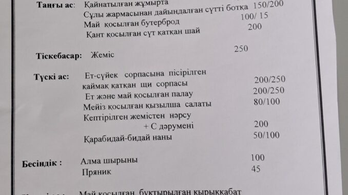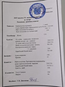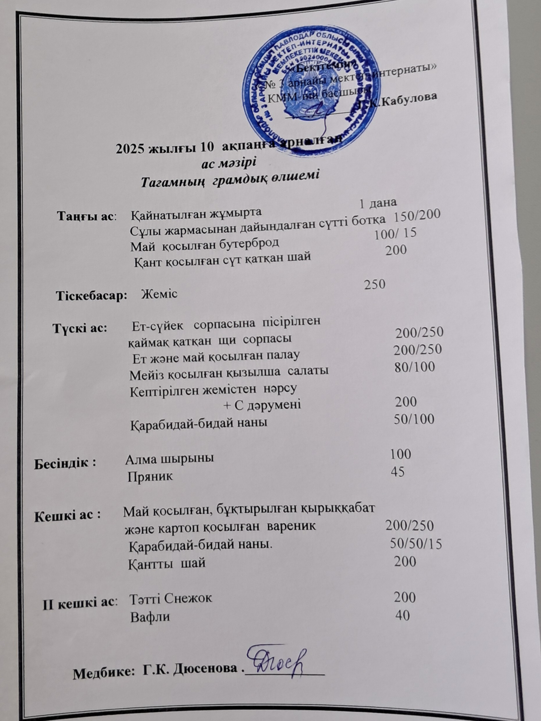 2025 жылғы 10 ақпанға арналған ас мәзірі