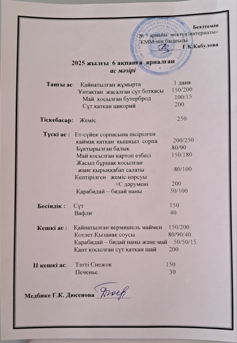 2025 жылғы 6 ақпанға арналған ас мәзірі