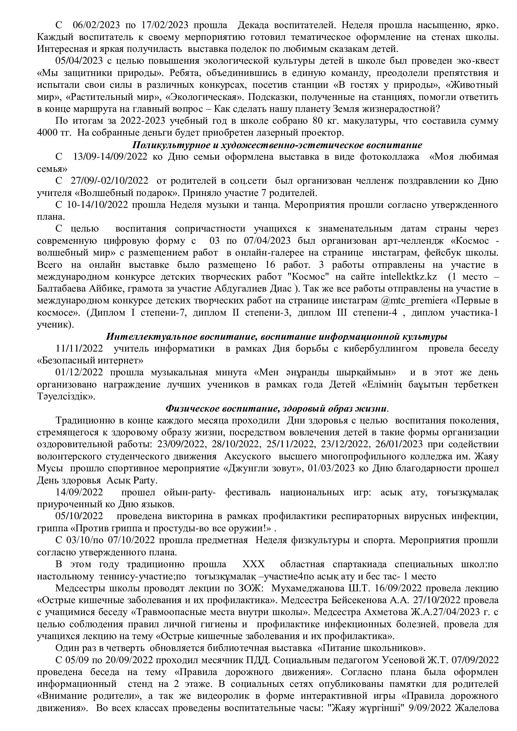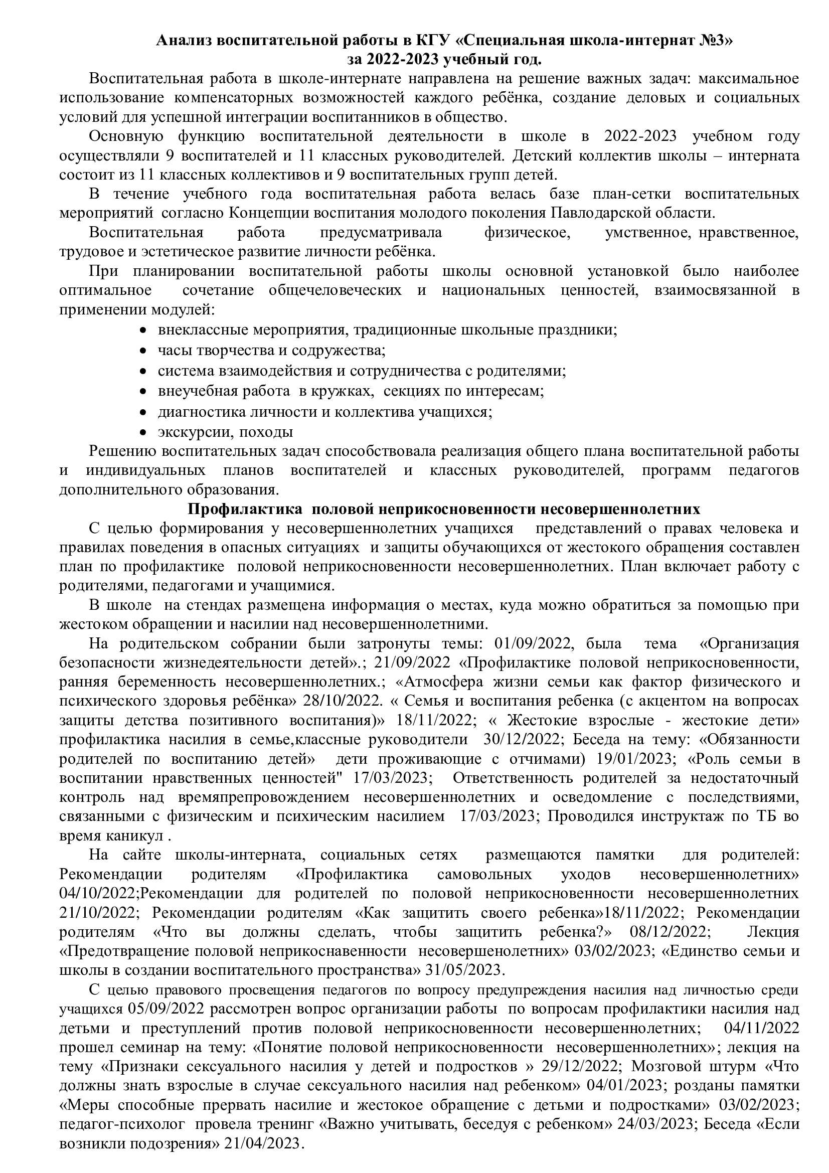 Анализ воспитательной работы в КГУ «Специальная школа-интернат №3» за 2022-2023 учебный год 22.08.2023 internatadmin Воспитательная работа 0