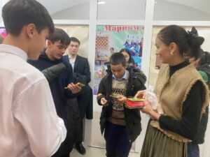 В рамках “Недели музыки и танца” учащиеся школы посетили студию “Мариям”. Директор студии Саруарова А.А. познакомила с основными направлениями студии.