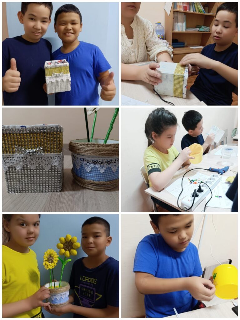 Кружок «Алтын қолдар», 5-7 «Ә» классы. Изготовление «Органайзера» из пустой тары (ёмкости). Руководитель кружка: Бекет Е.