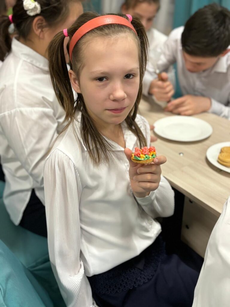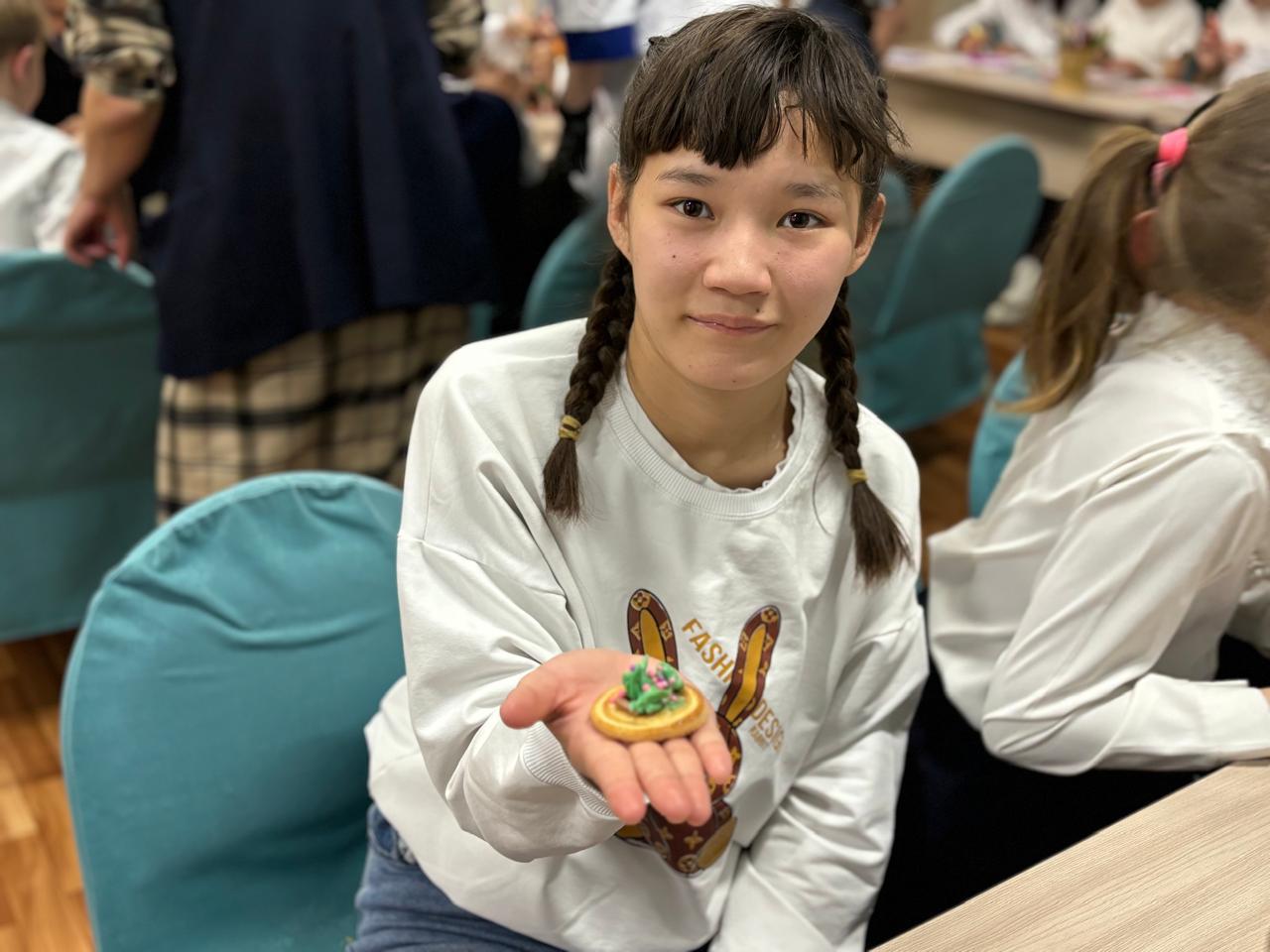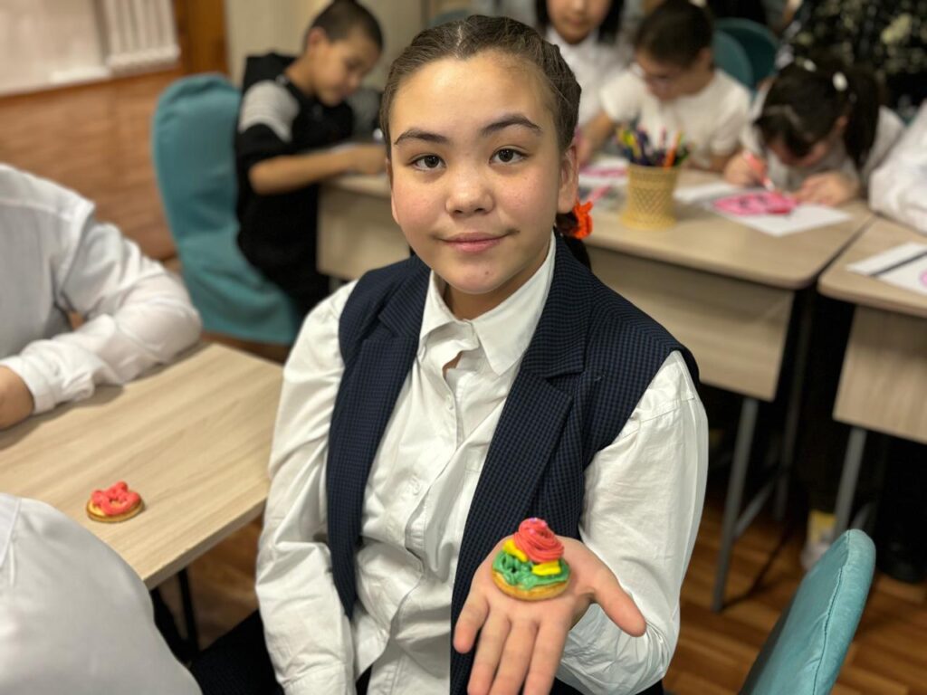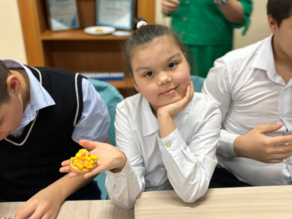 В рамках познавательной программы ребята посредством мастер-класса от шеф-кондитера, педагога АВМК имени Жаяу Мусы Абдрахмановой З.З. познакомились с технологией оформления печенья.