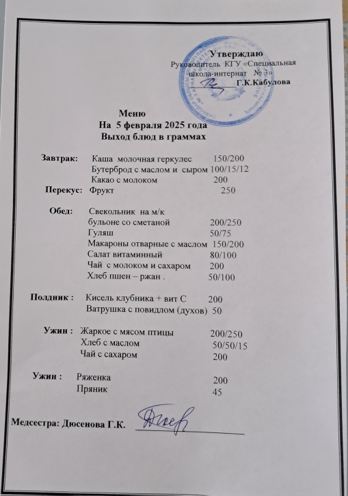 Меню на 5 февраля 2025 г