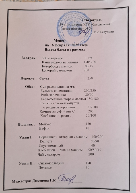 Меню на 6 февраля 2025 г