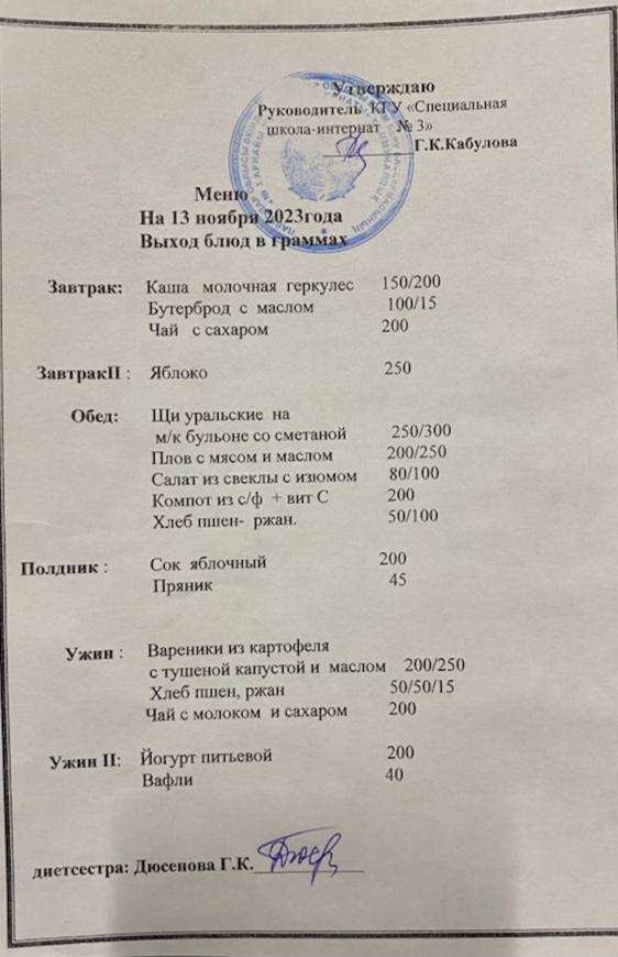 Меню 13.11.2023