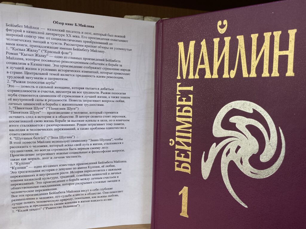 В ходе обзора произведений Бейімбета Майлина были рассмотрены ключевые работы писателя, раскрывающие социальные и моральные вопросы казахского общества начала XX века. Его творчество сочетает реализм и народную прозу, отражая важнейшие темы справедливости, свободы и человеческих ценностей. Майлин остаётся значимой фигурой в казахской литературе благодаря своему глубокому и актуальному наследию.