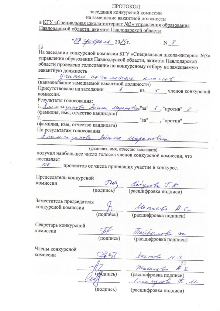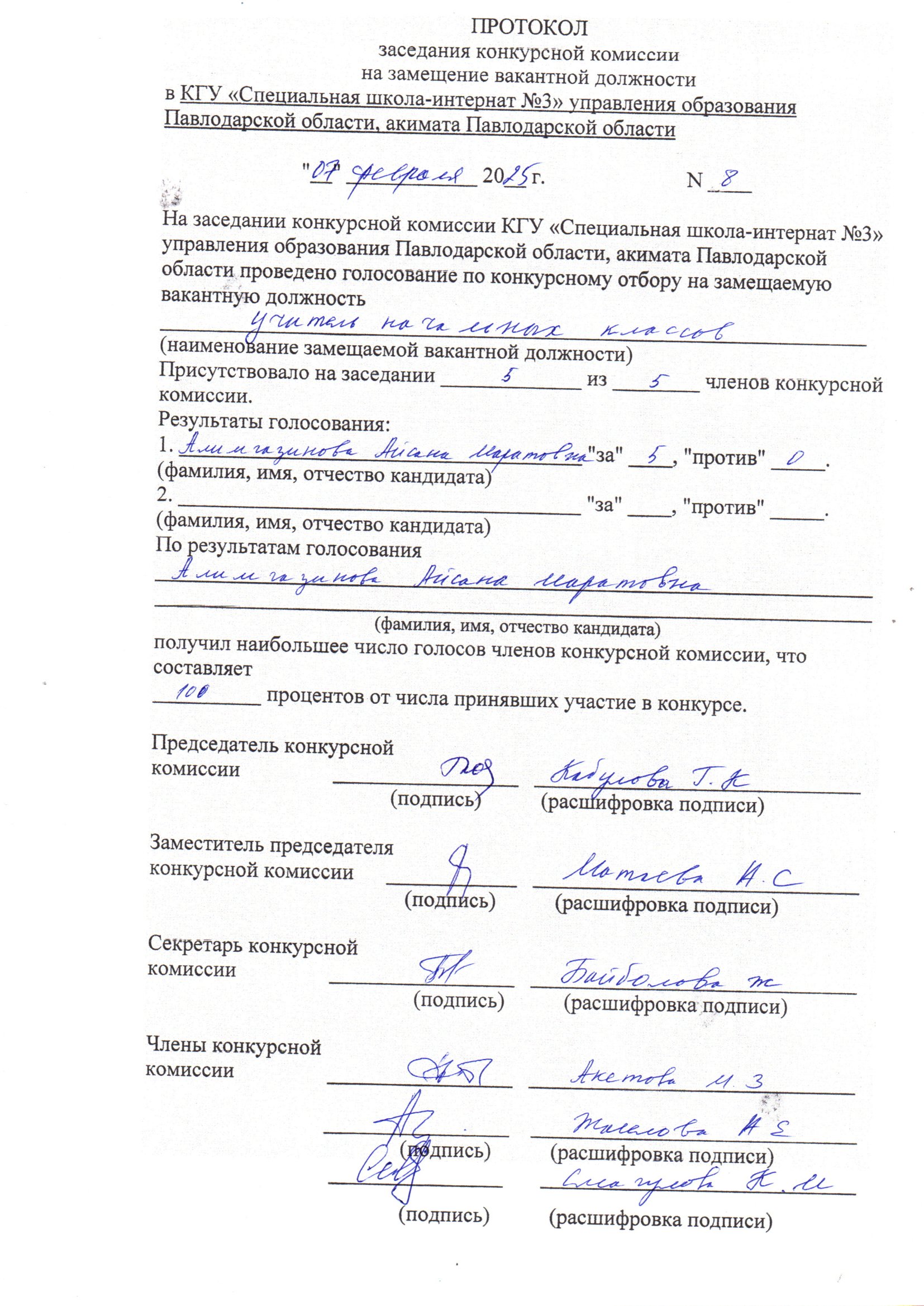 Протокол заседания конкурсной комиссии на замещение вакантной должности 07.02.2025 internatadmin Вакансии 0