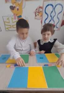 Описание игры. Педагог проговаривает три слова, два из них произносит неверно. Задача учащихся услышать правильное произношение слова и определить на каком цвете было сказано правильно.