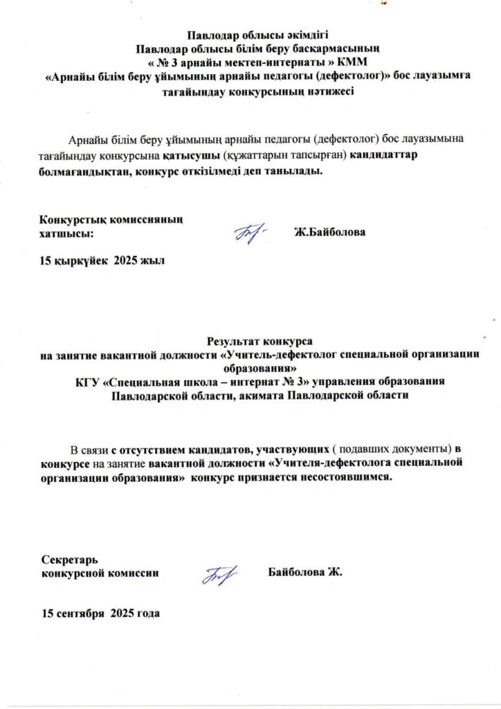 Результаты конкурса на замещение вакантной должности