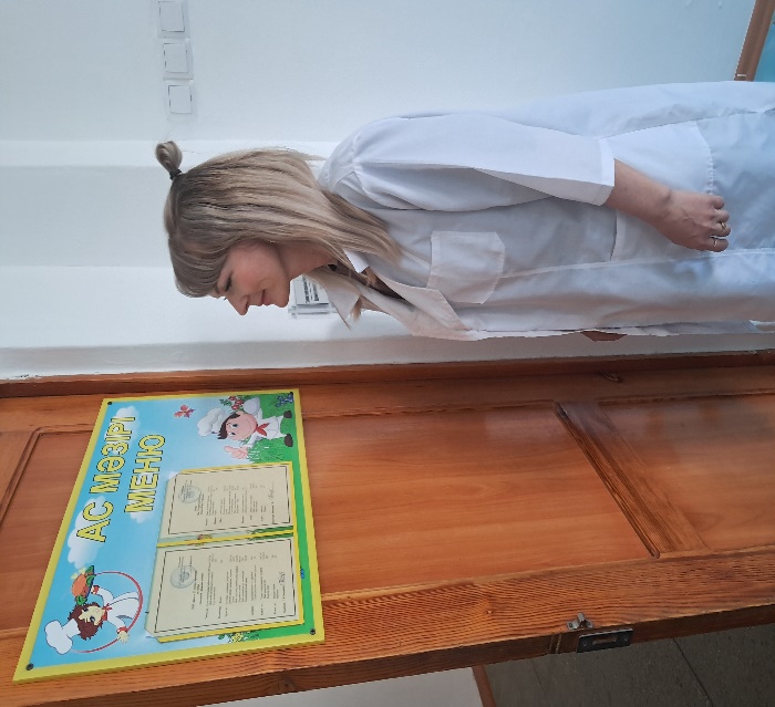 24.04.2025 г в КГУ «Специальная школа-интернат№3»  член бракеражной комиссии Ульянич Дария Валериевна  проверила качество питания учащихся на соответствие утверждённого меню, санитарно-гигиеническую часть содержания обеденного зала. В ходе проверке Ульянич Д.В. отметила в столовой чисто, меню соответствовало.