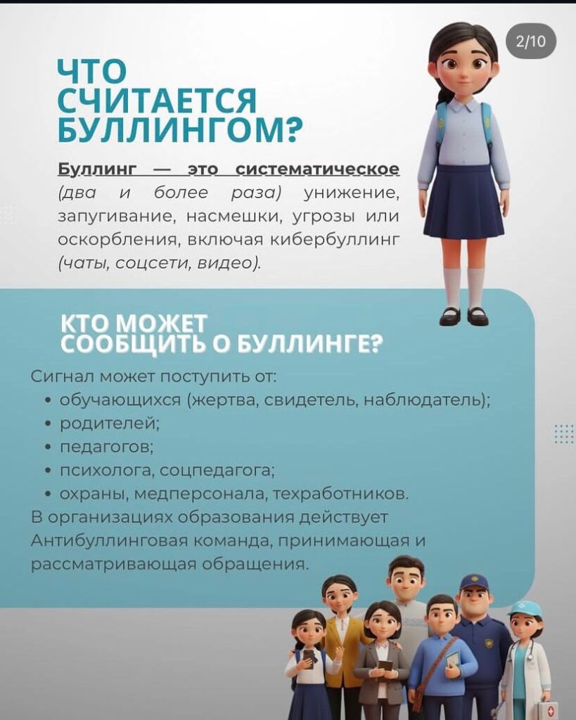 🛡️С 2022 года в Казахстане на законодательном уровне закреплены понятия «буллинг» и «кибербуллинг». С 2024 года за такие действия предусмотрена административная ответственность.